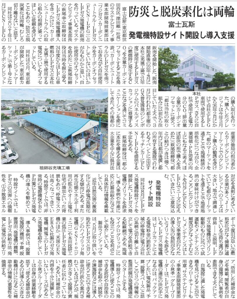 トップ NEWS サステナビリティ事業本部の取り組みが『プロパン新聞』に掲載さ…